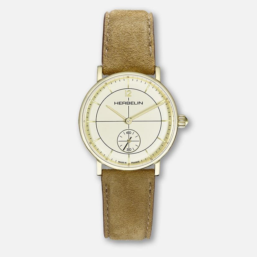 Devetüyü rengi eyer dikişli süet deri kayışla donatılan Ladie’s Inspiration, vintage ruhunu zarif bir şekilde ifade ediyor. Kalite ve güvenilirliğin garantisi olan İsviçre yapımı kuvars mekanizmanın ritmine sahip bu saat, 75 yıldır babadan oğula aktarılan geleneksel Fransız saatçilik uzmanlığının devamı olarak HERBELIN atölyelerinde üretildi.