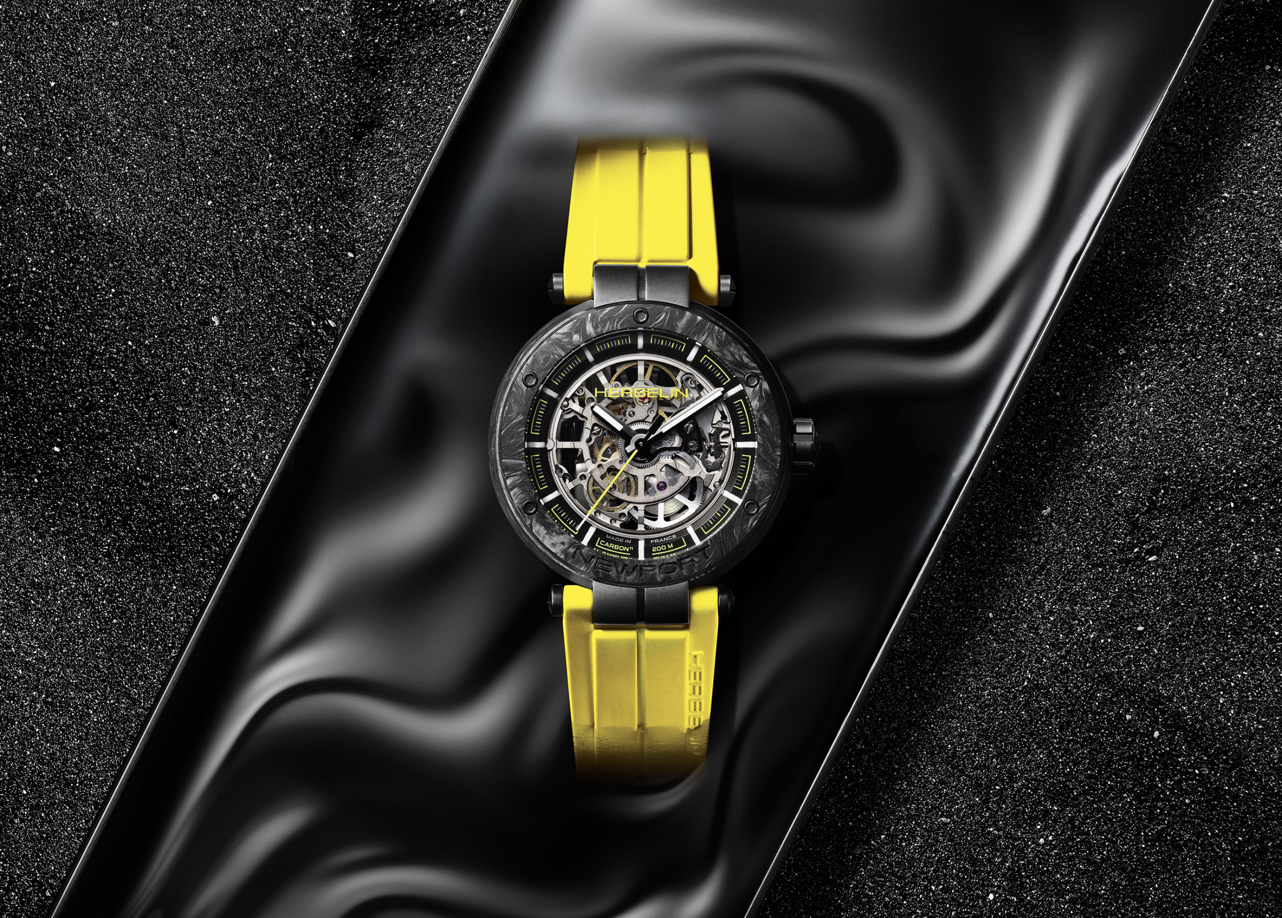 HERBELIN, Newport Carbon Titane koleksiyonunu, marka elçisi Aurélien Ducroz’un – İki kez Freeride Dünya Şampiyonu ve Class40 Şampiyonu – 2022 Route du Rhum yarışında ona eşlik etmesi için tasarladı. Fransız markasının bu olağanüstü spor saat koleksiyonu, artık sınırlı sayıda üretilen (500 adet numaralı parça) iskelet yapılı bir modelle taçlandırıldı. Bir yarış arabası gibi, mekanizması göz önüne serilmek ve ağırlığı azaltılmak amacıyla iskeletleştirilmiştir.