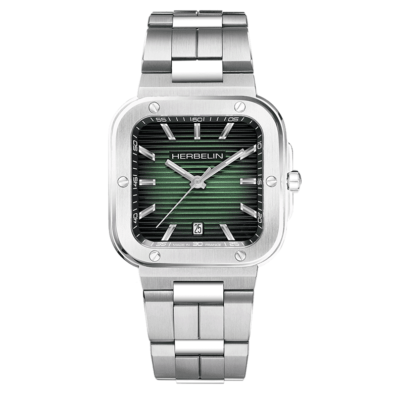 Quartz Movement 10 ½ x 11 ½ Ronda 3540-D - Swiss Movement Acier Inox 316L - Stainless Steel Sapphire Crystal - Water Resistant 100 m Épaisseur - Thickness: 11,20 mm Boucle Traditionnelle - Standard Buckle FKM Cap Camarat. 40,50 x 40,50 mm
